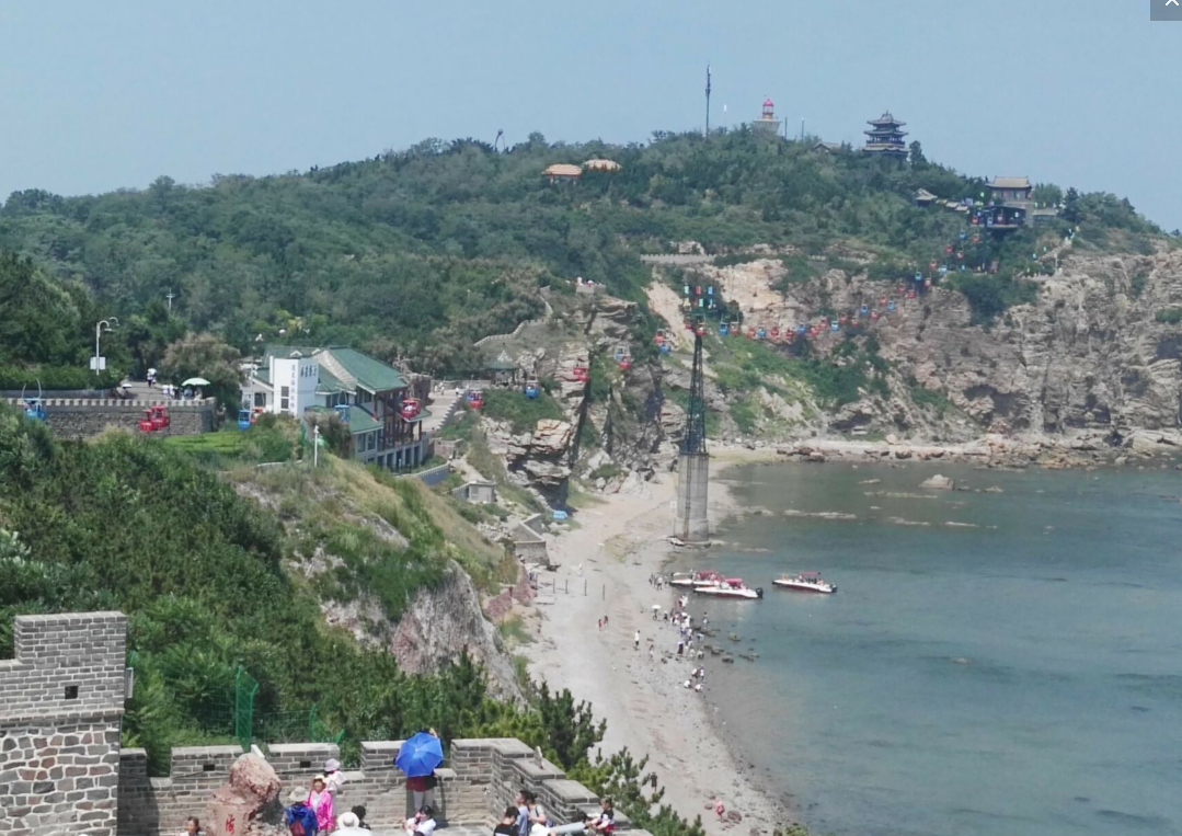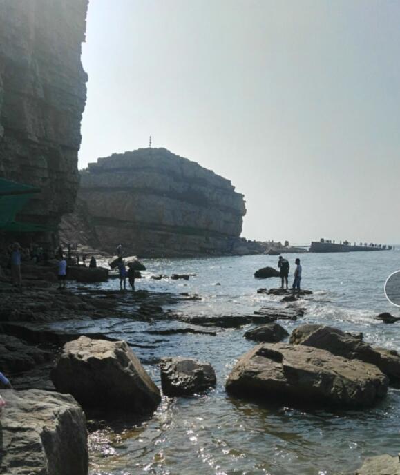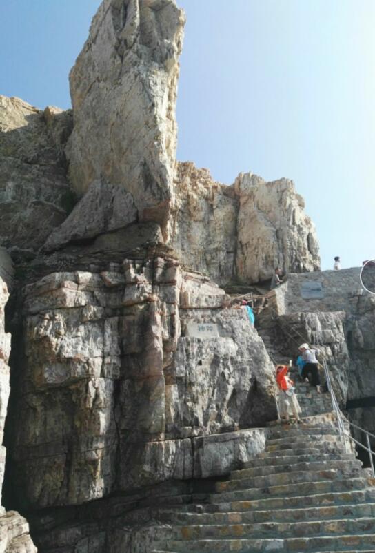 早晨乘船登上長島游覽九丈崖和月牙灣風(fēng)景區(qū)美麗的九丈崖蓬萊閣壯麗的海岸風(fēng)景合影留念
