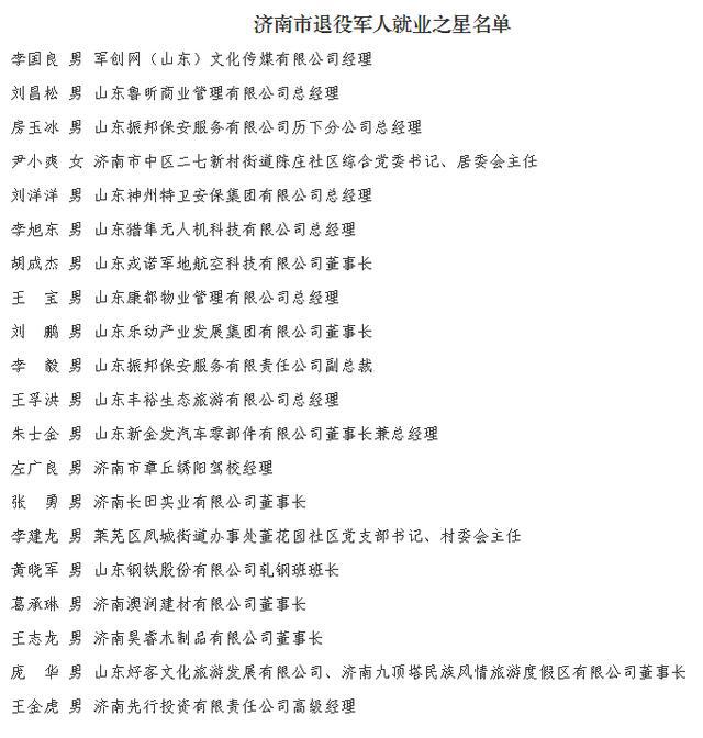 擬確定李國良等20名同志為濟(jì)南市退役軍人就業(yè)之星
