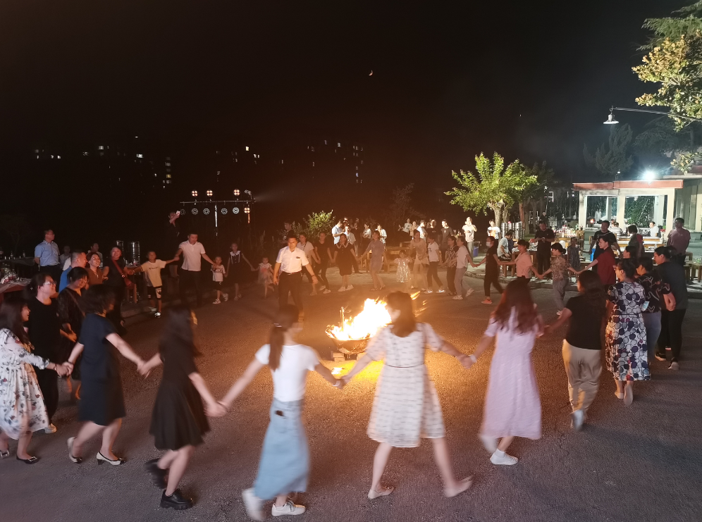 家人們愉快就餐,氣氛十分融洽。多才多藝的學(xué)子和員工們演唱了精心準(zhǔn)備的歌曲,大家手拉手圍繞著篝火跳起歡快的舞蹈,爽朗的笑聲將慶祝會的氣氛推向高潮……